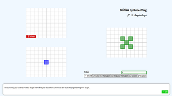 Minko is a game about summing shapes. Your task is to figure out exactly how this sum is defined as, and to solve puzzles that require you to provide the correct sums.
